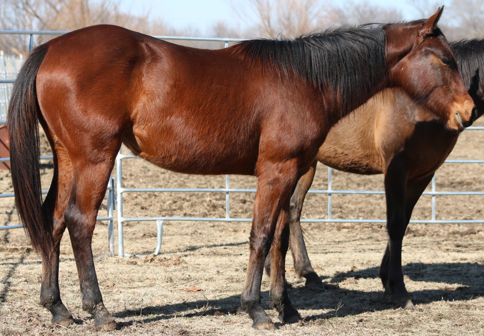 Zans Pepsi Cola, aka Cola, a quarter horse filly, was born April 30, 2012. She is registered AQHA as a bay and she has been started. She is out of Fancy and Chance.