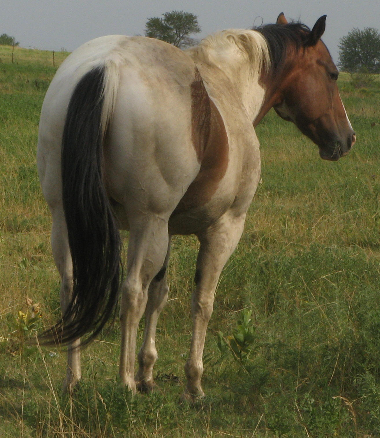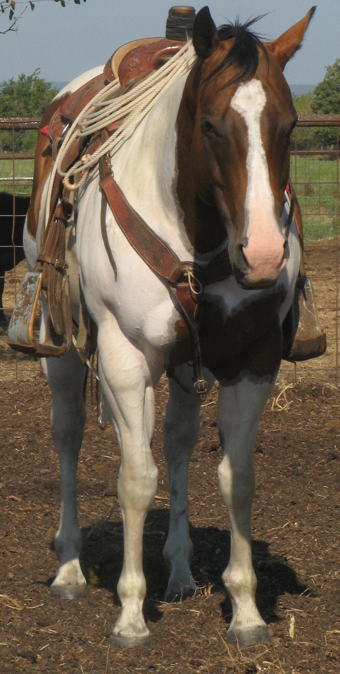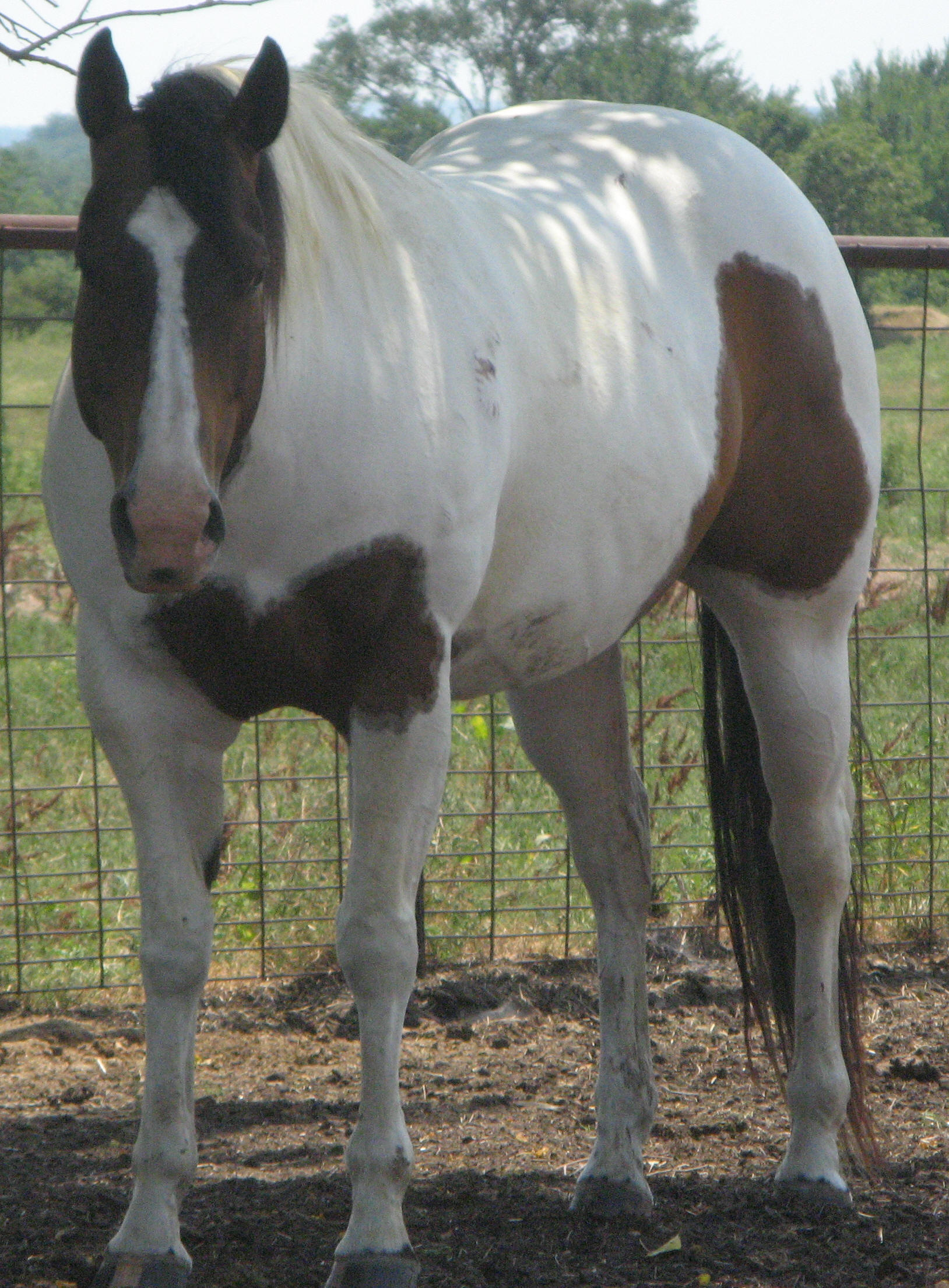 Rubys Crown, aka Sally, is a bay tobiano mare. She is registered APHA (#726765). She was born April 2003.