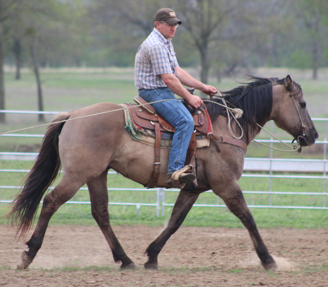 Smokey, is a grade quarter horse gelding. He is ten years old and 15.1 hands tall. He is broke to ride and is ready to rope.