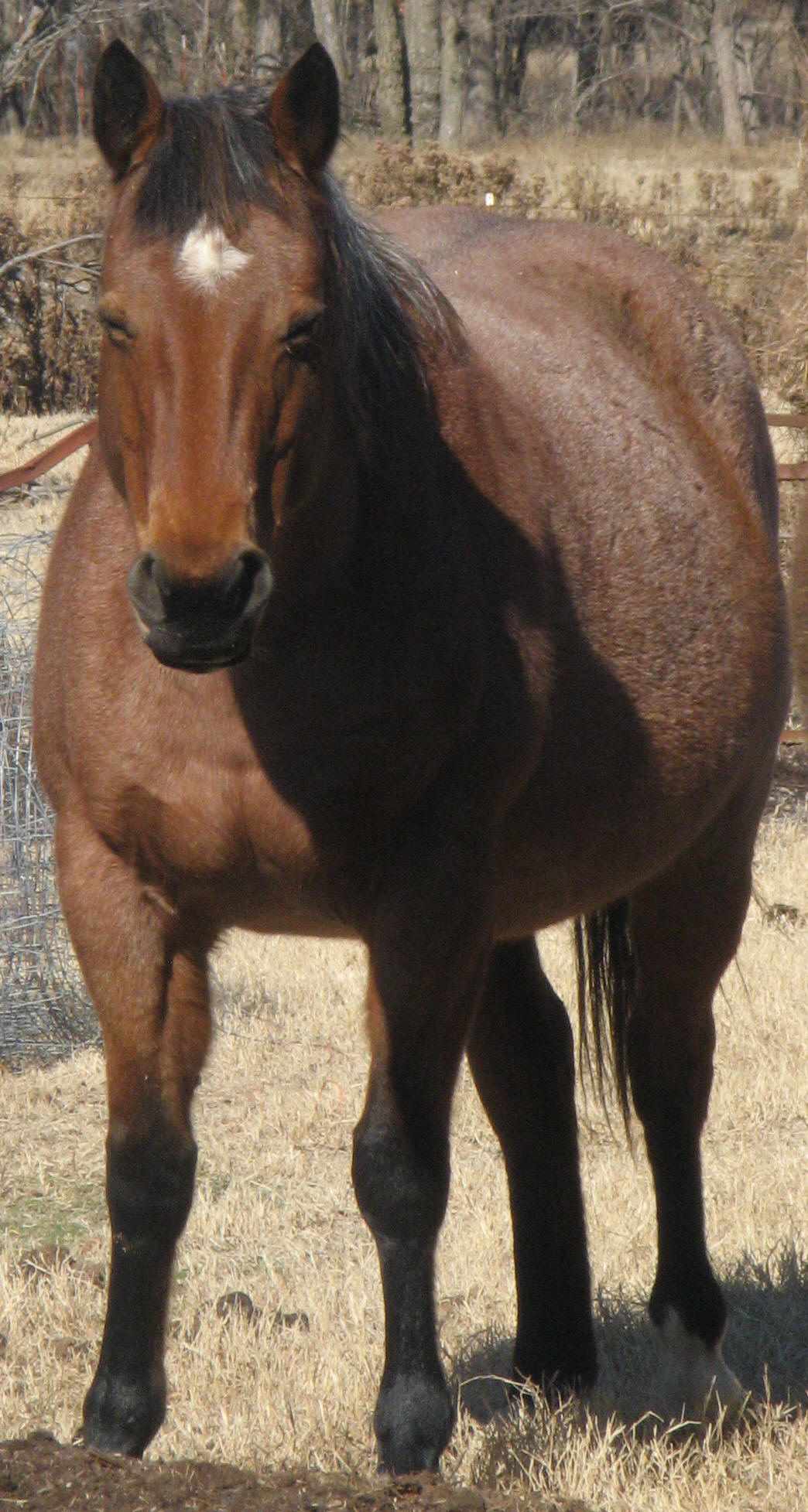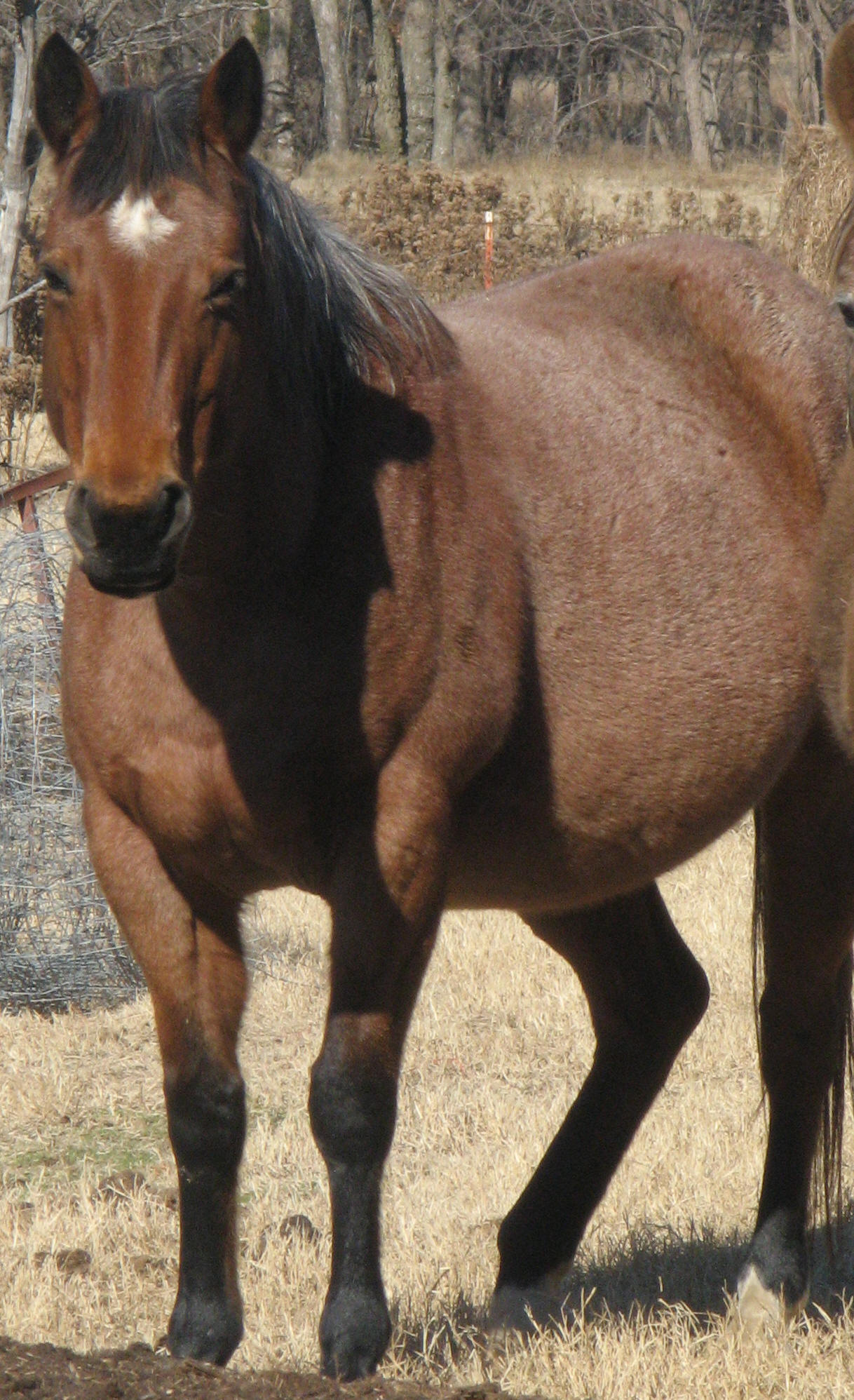 Rafter Otoe Squaw, aka Squaw, is a bay roan mare. She is registered AQHA (#4202128). She was born May 2002.